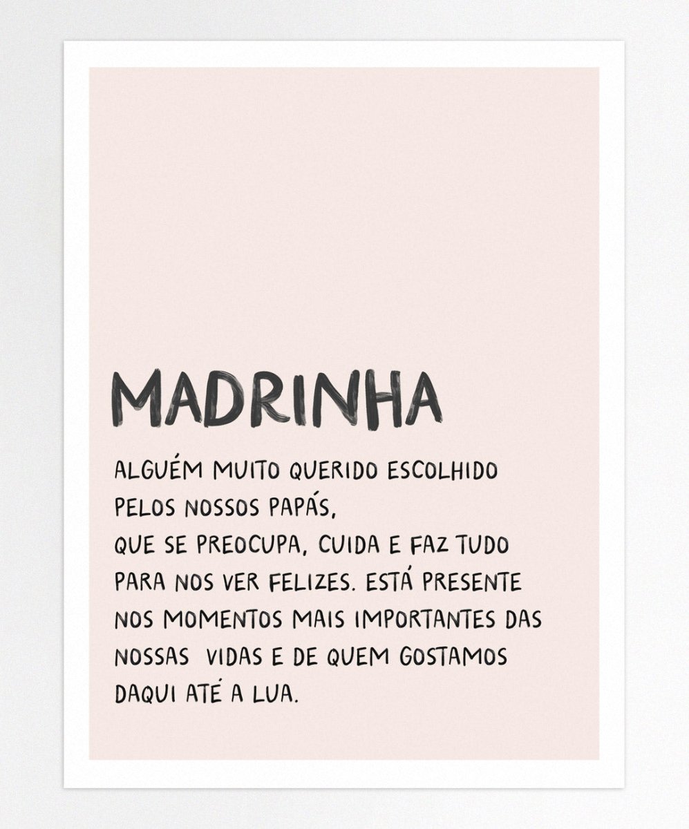 Discover the 'Madrinha' poster. A unique tribute to all godmothers. Available in physical or digital versions and in 3 sizes. Ideal for giving and celebrating the irreplaceable role of a godmother. Order yours now!