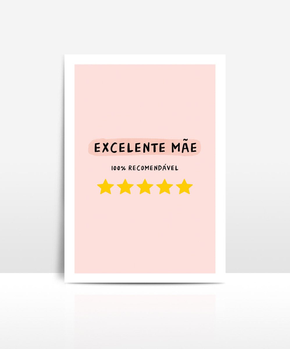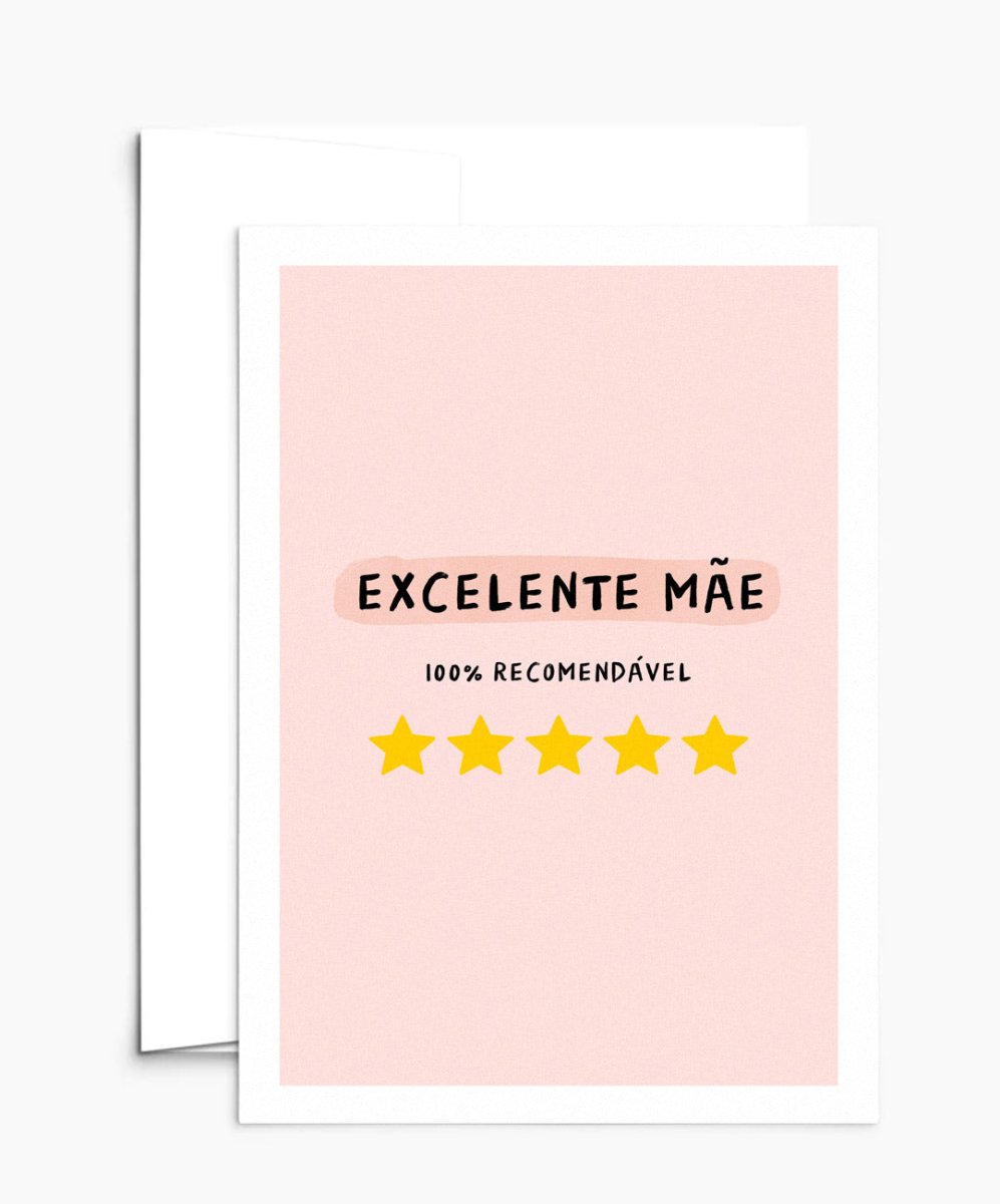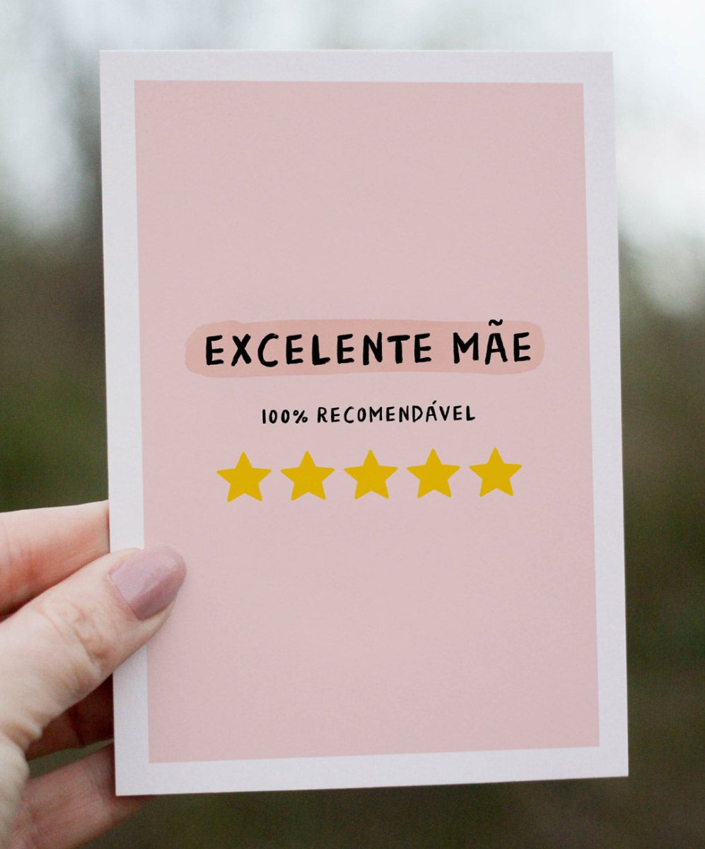 Surprise your mom with the 'Excelente Mãe' postcard from Catita Illustrations. Ready to download and print, all you need to do is add your message. With a five-star rating and the text 'Excelente Mãe. Totalmente recomendável, this postcard proves your mom is the 'BEST MOTHER'. The perfect gift to laugh and celebrate the wonder mom in your life!